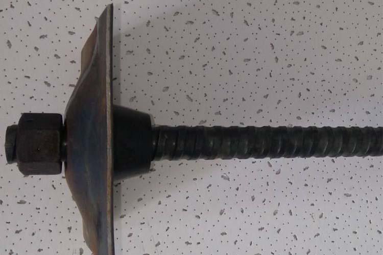 3、安裝止?jié){塞、墊板、螺母:在錨桿尾端安裝止?jié){塞、墊板和螺母。