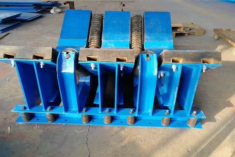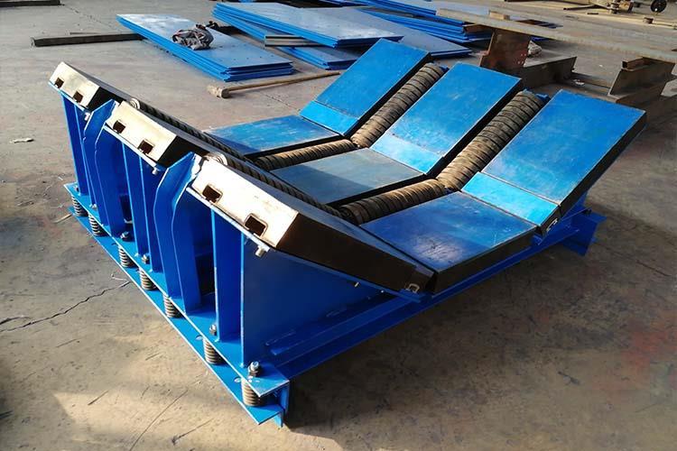 皮帶機(jī)緩沖床主要用于皮帶機(jī)導(dǎo)料槽下方的落料口處,當(dāng)物料下落時(shí),緩沖床利用自身彈性對物料下落到皮帶上的沖擊力進(jìn)行處理,使沖擊力達(dá)到很小,以保證皮帶機(jī)正常運(yùn)行。皮帶機(jī)緩沖床的表層緩沖條擁有五百萬分子量的高分子聚乙烯板面,該高板于皮帶呈面面接觸,使?jié)櫥赃_(dá)到很高,摩擦系數(shù)降至很低。