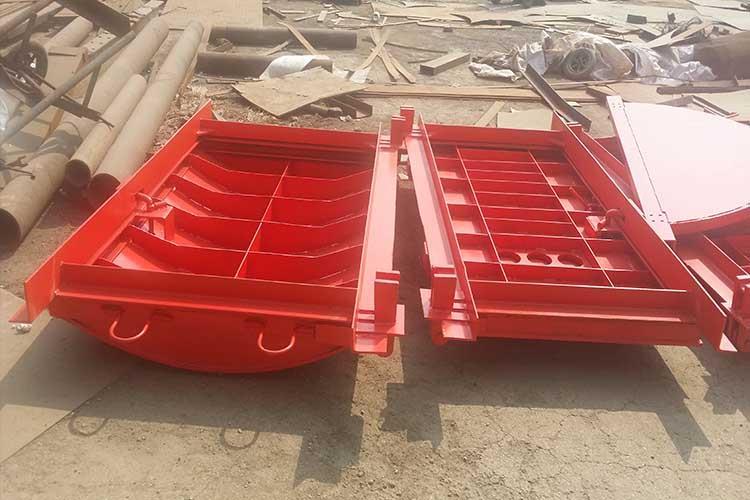 抗沖擊波活門與密閉門組合使用,安裝在炸藥庫(kù)兩邊配合使用,通風(fēng)活門組分為3組,使用時(shí)可根據(jù)井下材料庫(kù)需要風(fēng)量和總回風(fēng)道負(fù)壓值,確定通風(fēng)活門組數(shù),抗沖擊超壓能力為2500Kp。抗沖擊波活門用于井下爆炸材料庫(kù)和爆炸材料發(fā)放硐室,起隔離作用阻止爆炸沖擊波及爆炸產(chǎn)生的火焰、有毒氣體向外部巷道擴(kuò)散。